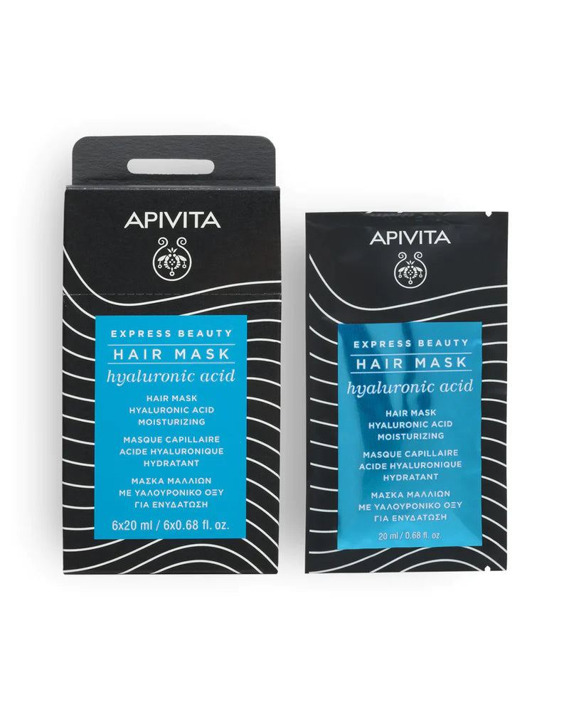 Apivita Express Beauty Hyaluronic Acid Moisturizing Hair Mask është një maskë hidratuese për flokët.
