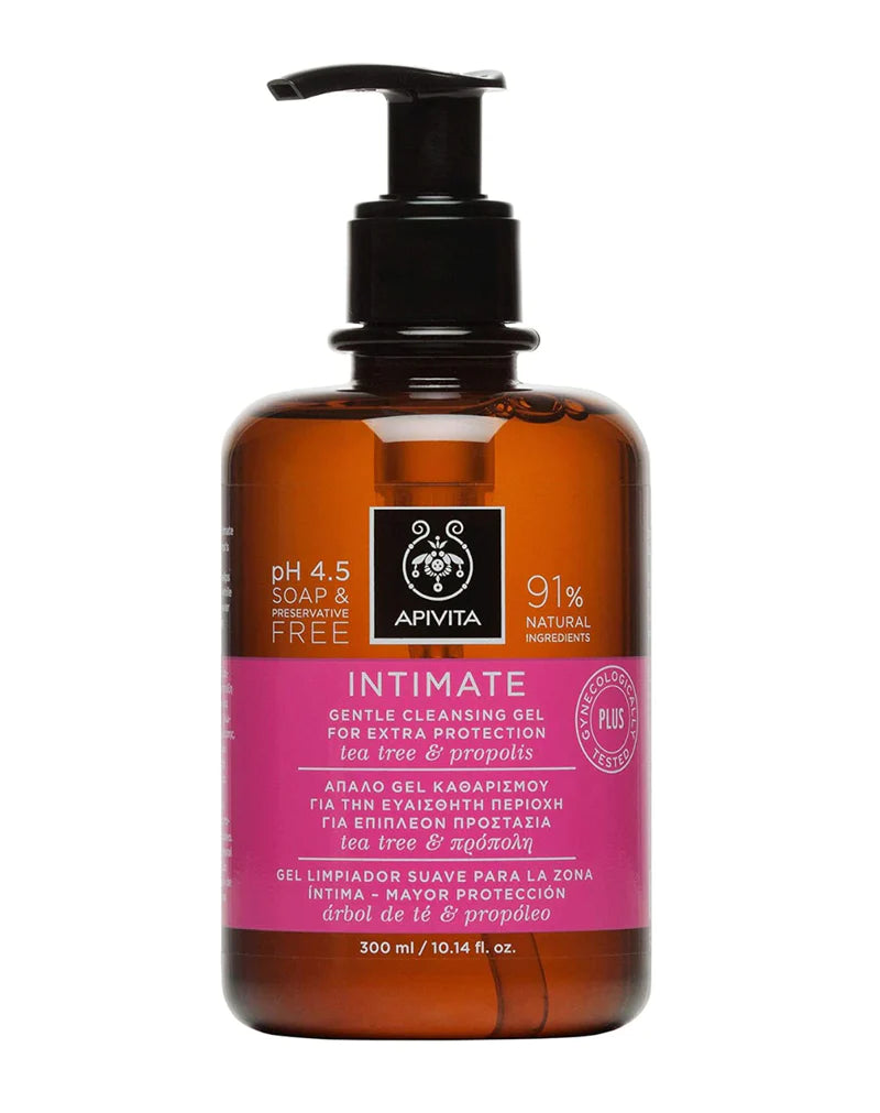 Apivita Gentle Intimate Cleansing Gel, larës intim i butë. Pastron butësisht dhe redukton kruajtjen dhe acarimin, duke rivendosur ekuilibrin natyror.