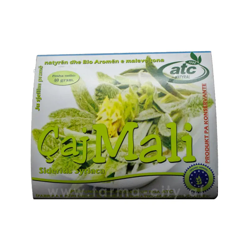 Vetitë: Çaji i malit është ndër çajrat më të njohur dhe më të përdorshëm në vendin tonë si dhe në disa nga vendet e mesdheut. Ne kemi përzgjedhur për ju, në çajin e malit, varietetin më të mirë të kësaj bime (Sideritis). E kemi seleksionuar që në origjinë. E kemi përpunuar sipas çdo standarti që bën të mundur , që në atë filxhan çaji të ndjeni aromën e natyrës së egër të maleve tona. Ruhet në vende të thata larg dritës dhe lagështirës.