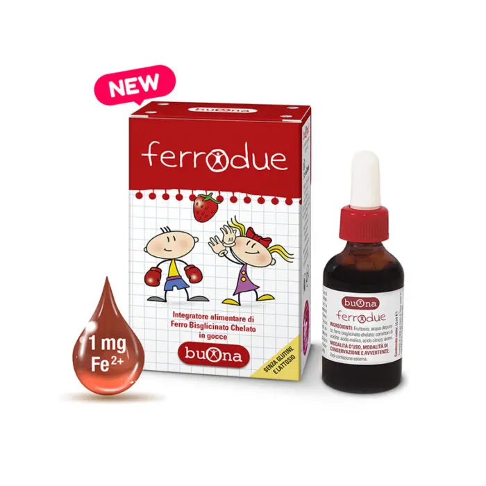Hekuri që gjendet tek Ferrodue është hekur Bis-glycinate Chelate, i përftuar me një proçes teknologjik të avancuar që garanton një tolerancë të shkëlqyer nga trakti gastrointestinal dhe një shkallë të lartë përthithjeje.