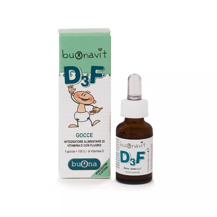 BuonaVit D3F është një formulim i Vitaminës D3 dhe Fluorit në pika, i përshtatshëm për administrim tek fëmijët, i cili kontribuon në zhvillimin e kockave gjatë rritjes dhe mirëmbajtjes së strukturës së kockave dhe dhëmbëve. Në veçanti, fluori kontribuon në mineralizimin e dhëmbëve. Një pikë permban 100 IU të vitaminës D3.