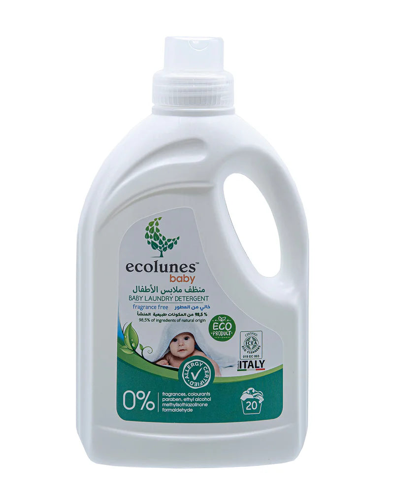 Detergjenti hipoallergjik i rrobave për fëmijë Ecolunes është formuluar me kujdes duke marrë parasysh lëkurën e ndjeshme të foshnjave.