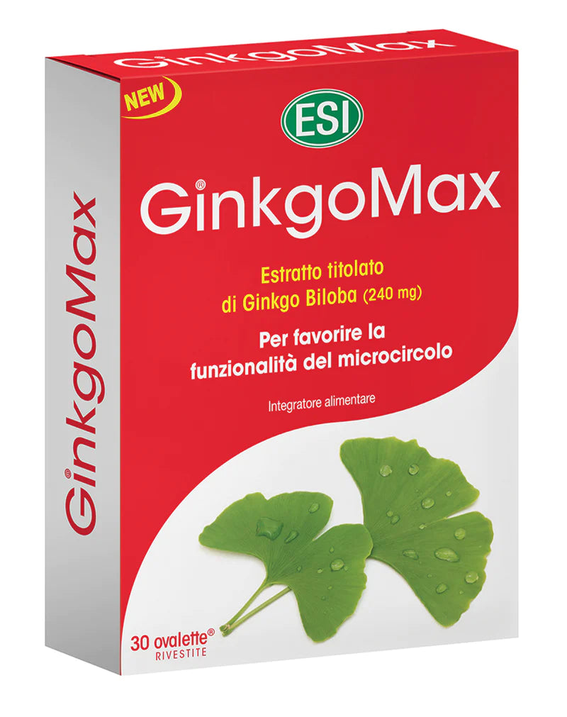 ESI GingkoMax është një suplement ushqimor që ndihmon në trajtimin e problemeve të Përqendrimit, Kujtesës apo Qarkullimit të gjakut (probleme vaskulare, trombe, edemë...), në sajë të Ekstraktit të Ginkgos.