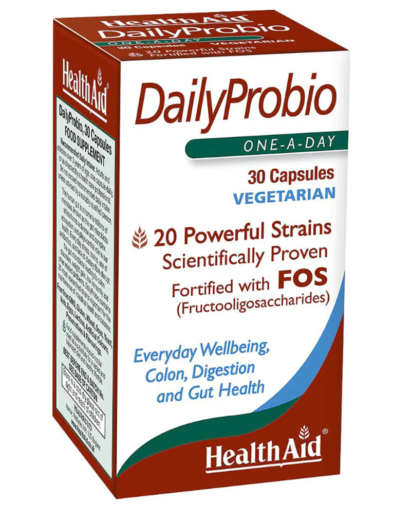 - HealthAid DailyProbio është një formulim unik dhe i sugjeruar për përdorim të përditshëm që përmban një përzierje superiore të 10 miliardë kulturave të gjalla, duke përdorur 20 shtame të ndryshme rezistente ndaj acideve dhe biliare më të hulumtuara për të siguruar që bakteret të mos shkatërrohen nga lëngjet e stomakut përpara se të arrijnë në zorrë.