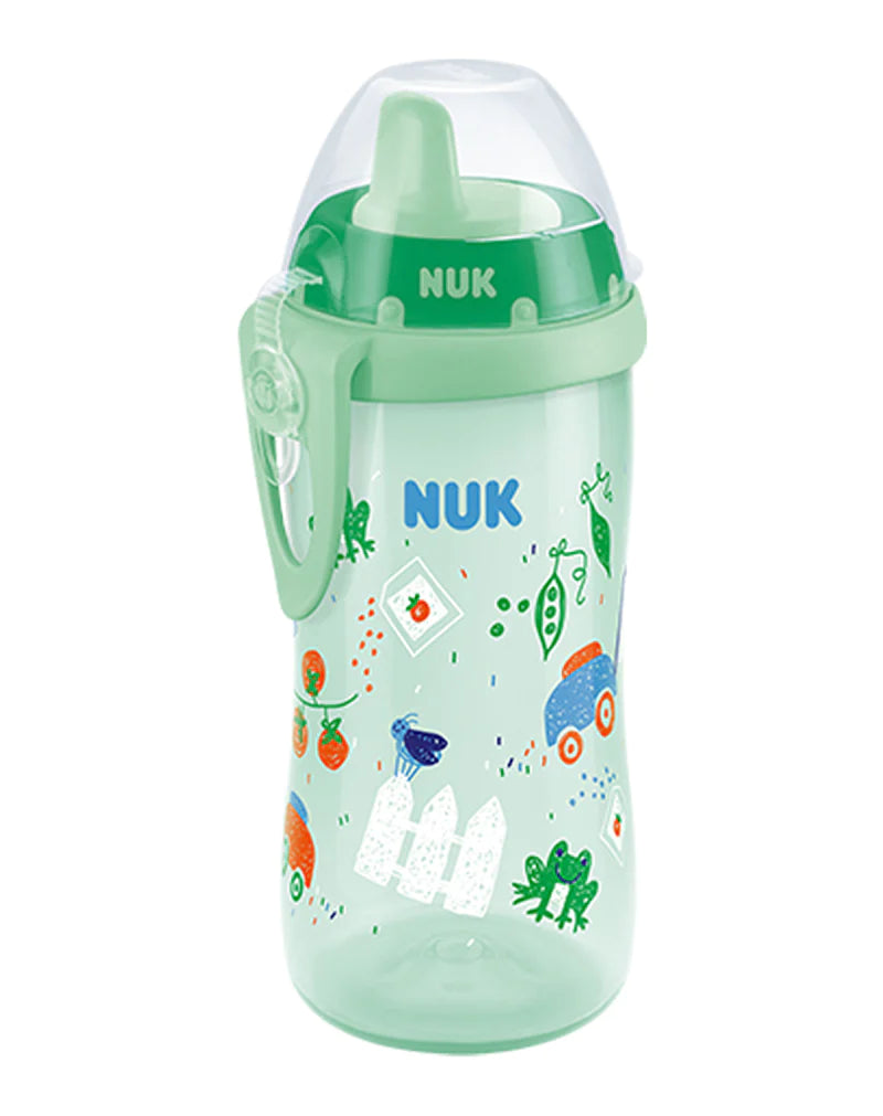 - Shishja NUK Kiddy ka kapacitet 300 ml për fëmijët shumë të etur, ndërsa forma e saj e konturuar e bën të lehtë kapjen dhe mbajtjen nga duart e vogla.