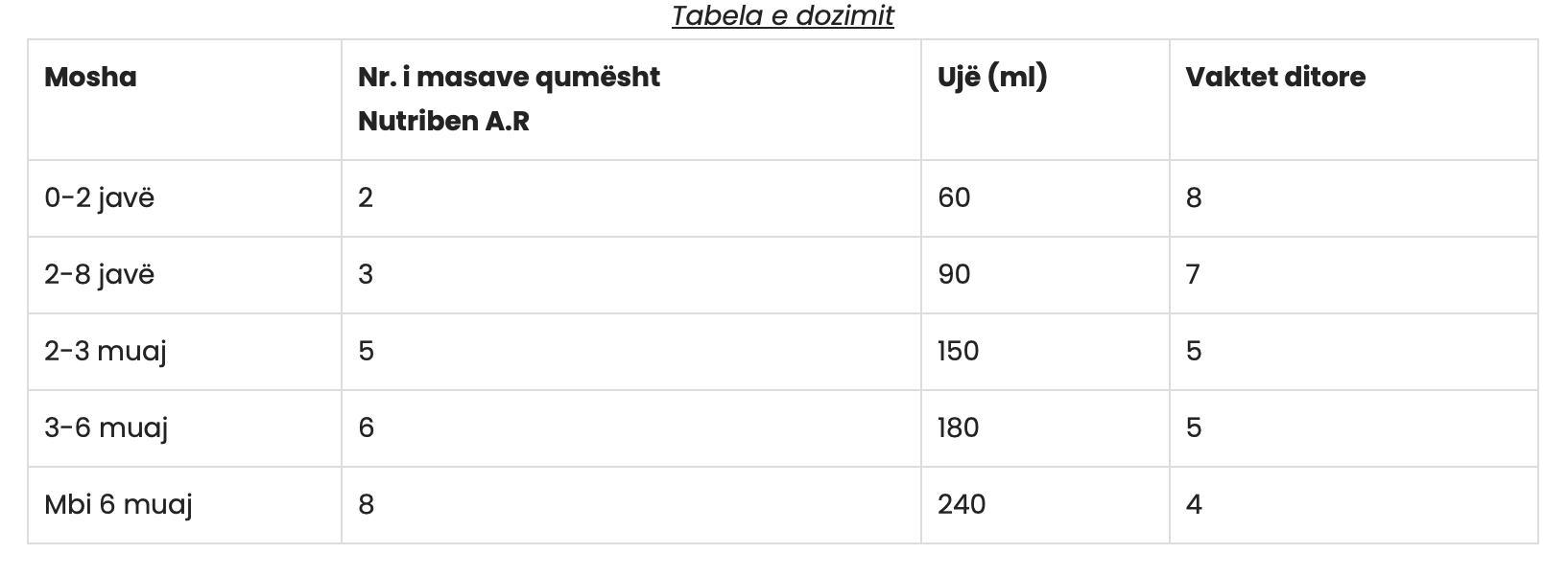 Nutribén ® A.R. është i përshtatshëm për bebe që nga lindja, kur ushqimi me gji nuk është i mundur ose i mjaftueshëm.