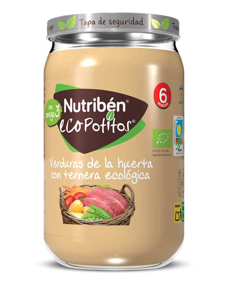 Nutriben Eco Potitos Vegetable and Beef 6 Months + është një pure perimesh dhe mishi, për fëmijët që nga mosha 6 muajshe.