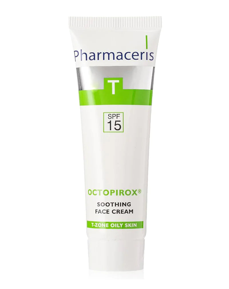 Pharmaceris Octopirox Soothing Face Cream SPF 15 është një krem me veti qetësuese, hidratuese dhe rimbushëse për lëkurën e prekur nga aknet. Kremi rikthen ekuilibrin e shëndetshëm hidro-lipidik në lëkurë dhe forcon barrierën e saj mbrojtëse.