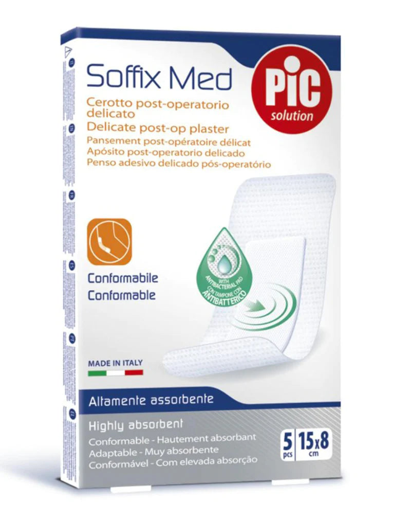 PIC Soffix Med Post-Op Plaster është një garzë mbrojtëse, jo e endur për plagët kirurgjikale në shkallë të gjerë, me një shtresë Klorheksidinë antibakteriale, e cila është edhe thithëse dhe shumë absorbuese.