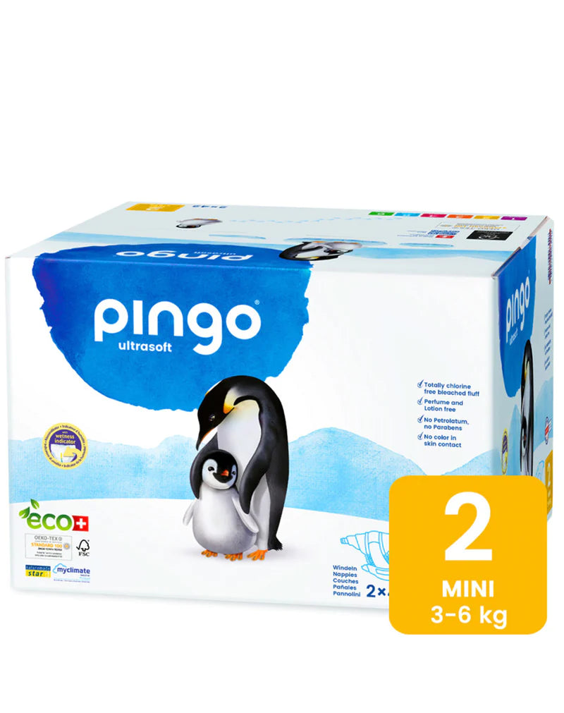 Pingo Ultrasoft Nappies 2 Mini (3-6kg) janë pelena ekologjike për bebe me peshë nga 3-6 kg.