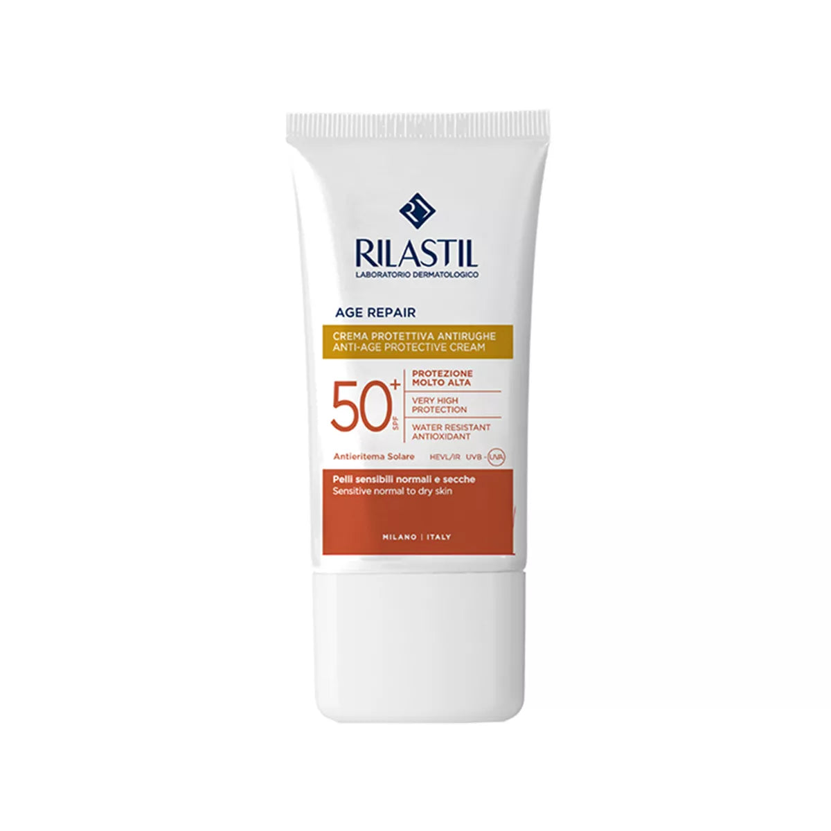 Krem për fytyrën mbrojtës ndaj diellit me teksturë fondente i formuluar specifikisht me kompleksin Age-repair, i cili bën të mundur parandalimin e fotoplakjes.
