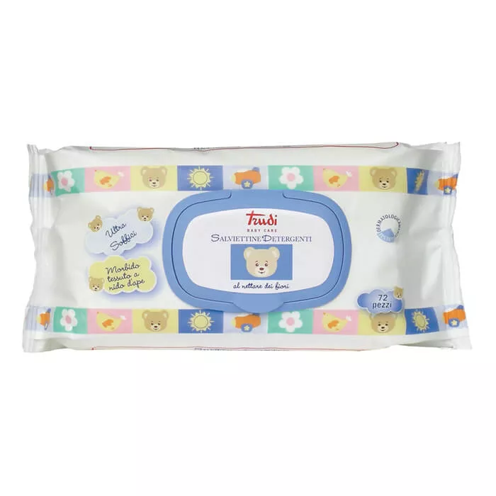 Një produkt i domosdoshëm për tu mbajtur gjatë ndërrrimit të pelenave ose në çantën e udhëtimit. Letrat e lagura TRUDI falë copës shumë të butë, kujdeset për lëkurën e bebes me shumë delikatesë duke lënë në lëkurë një shtresë të lehtë hidratuesi me nektarin e luleve. Ideale gjithashtu për duart dhe fytyrën e fëmijës.
